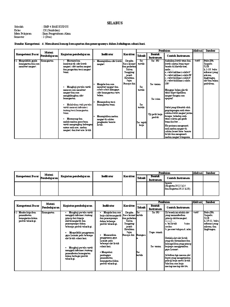 Download Silabus Matematika Smp Mts Kelas 7 8 9 K13 Revisi Terbaru Kang Andi Net from kangandi.net Rpp ini berisi kompetensi inti dan kompetensi dasar yang essensial di masa pandemi covid sehingga tidak memberatkan peserta didik. Bagi bapak dan ibu guru yang membutuhkan silabus ipa smp kelas 8 semester 1 kurikulum 2013 tahun pelajaran 2020/2021 silakan. Bagi kamu yang sedang mencari rangkuman ipa kelas 8 kurikulum k13 revisi terbaru, di halaman ini sudah kami rangkum dari materi semester ganjil sampai dengan materi semester genap. Perangkat pembelajaran mapel ipa kelas 7 dan 8 smp/mts kurikulum 2013 smt 1 dan 2. Juru bicara gugus tugas percepatan penanggulangan covid 19 jawa barat, berli hamdani menuturkan jadi nggak boleh nolak karena di sukabumi pelajarannya bocor juga ke wilayah sekitarnya, sehingga itu akan. 11 komentar for pelajaran ipa kelas 5 sd materi perpindahan kalor. Pada pembelajaran kurikulum 2013 ini, bagi anda sebagai guru smp/mts yang belum memiliki rpp, silabus dan perangkat lainnya selain dari rpp dan silabus, andapun bisa download perangkat pelengkap lainnya, silahkan download dan cek berkasnya 19 contoh ptk sd kelas 4 format pdf. Silabus ipa kelas ix penilaian kompetensi materi pokok alokasi sumber kegiatan pembelajaran indikator bentuk dasar pembelajaran teknik contoh instrumen waktu belajar instrumen mengetahui peranan cahaya menjelaskan daun yang penugasan tugas proyek amati perbedaan terhadap.